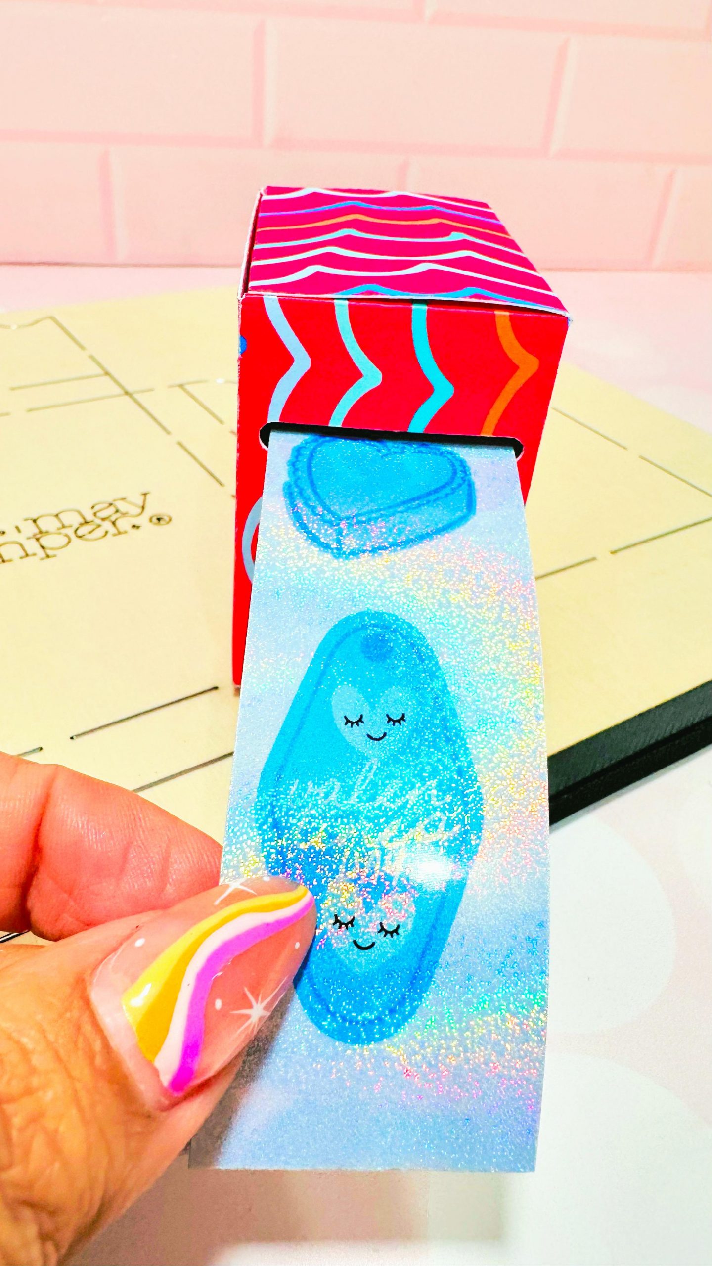 El troquel Sticker Roll está diseñado para crear una cajita especial para guardar rollos de stickers, ideal para proyectos creativos, kits, regalos y temporadas especiales como Valentine’s.